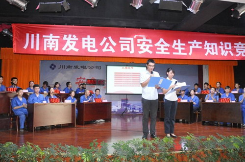 為認真落實公司安全生產(chǎn)工作的部署,根據(jù)川南發(fā)電公司《關(guān)于開展“反習(xí)慣性違章、防人身傷害事故”專項活動的通知》安排,公司于8月15日在公司檢修樓多功能廳舉辦了“反習(xí)慣性違章、防人身傷害事故”安全生產(chǎn)知識競賽。公司總經(jīng)理李勝章、黨委書記唐得旗、常務(wù)副總經(jīng)理譚先明、紀委書記、工會主席黃松和部分干部職工觀看了本次競賽,公司共有10支代表隊30人參加了競賽。
