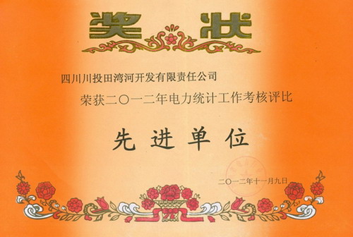 11月13日,四川省電力行業(yè)協(xié)會在年報會上表彰了2012年度統(tǒng)計工作先進(jìn)單位和優(yōu)秀個人,公司榮獲“2012年度統(tǒng)計工作先進(jìn)單位”榮譽(yù)稱號、王麗榮榮獲“2012年度統(tǒng)計工作優(yōu)秀個人”榮譽(yù)稱號。
