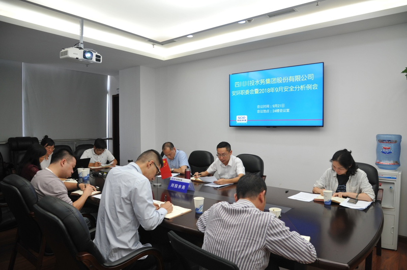 2018年9月21日,川投水務(wù)集團(tuán)召開安環(huán)職委會(huì)暨9月份安全分析例會(huì),會(huì)議由川投水務(wù)安環(huán)職委會(huì)主任鄧銳主持,安環(huán)職委會(huì)及安環(huán)職委會(huì)辦公室全體成員參加。