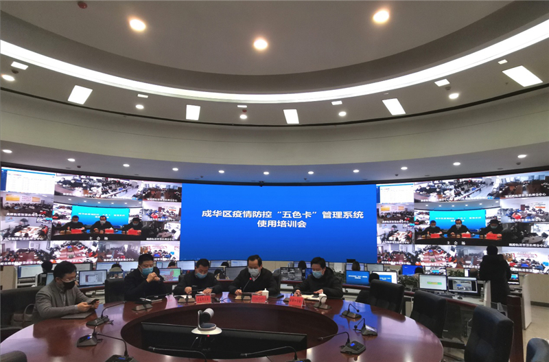 此外,為保障工作人員及時掌握系統使用方法、使用科技手段助力疫情防控,2月11日,成華區(qū)組織召開了“五色卡”管理系統上線培訓會議,智勝集成公司技術人員通過遠程視頻會議,操作演示了“五色卡”管理系統PC端和移動端,并對各街道、社區(qū)工作人員提出的問題進行解答。