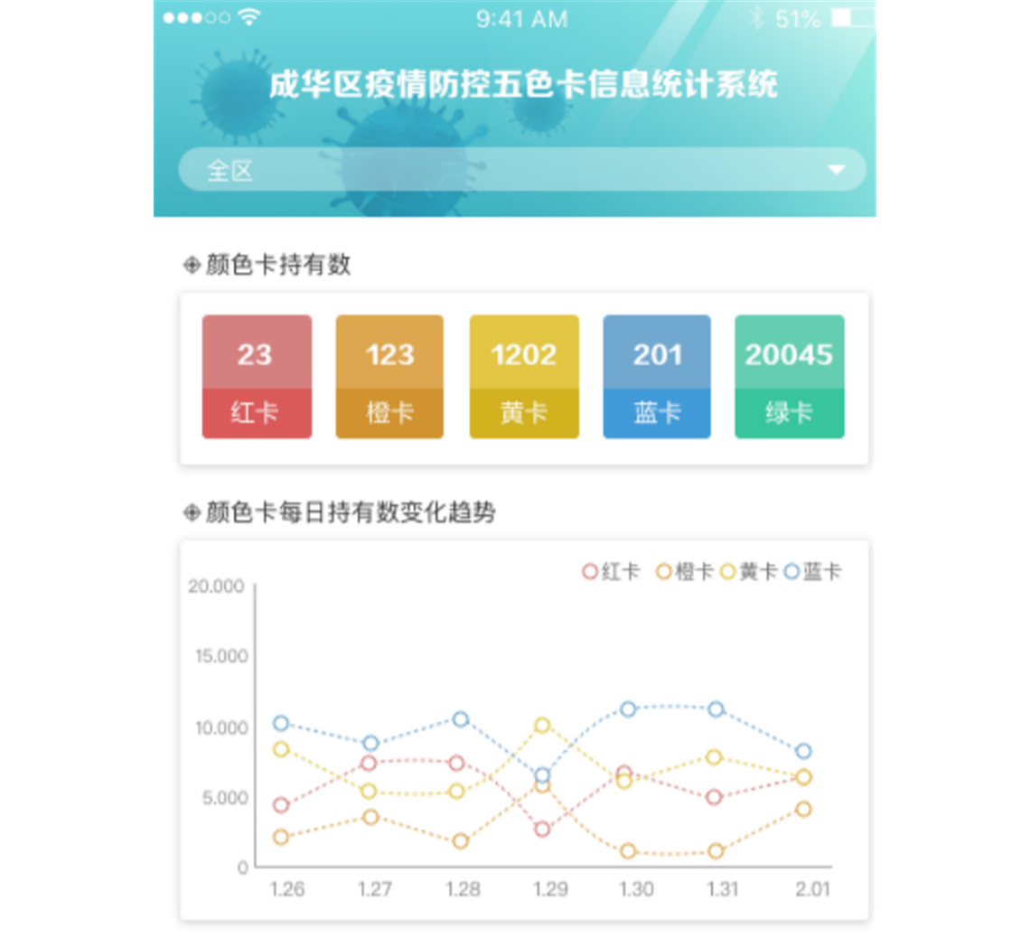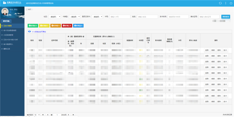 而支撐這“五色卡”的,則是川投信產所屬智勝集成公司利用互聯網+、大數據等信息技術,研發(fā)上線的“成華區(qū)疫情防控五色卡信息管理系統”。截至目前,該系統已在成華區(qū)全區(qū)11個街道、110個社區(qū)、全區(qū)130多萬居民中推廣使用。