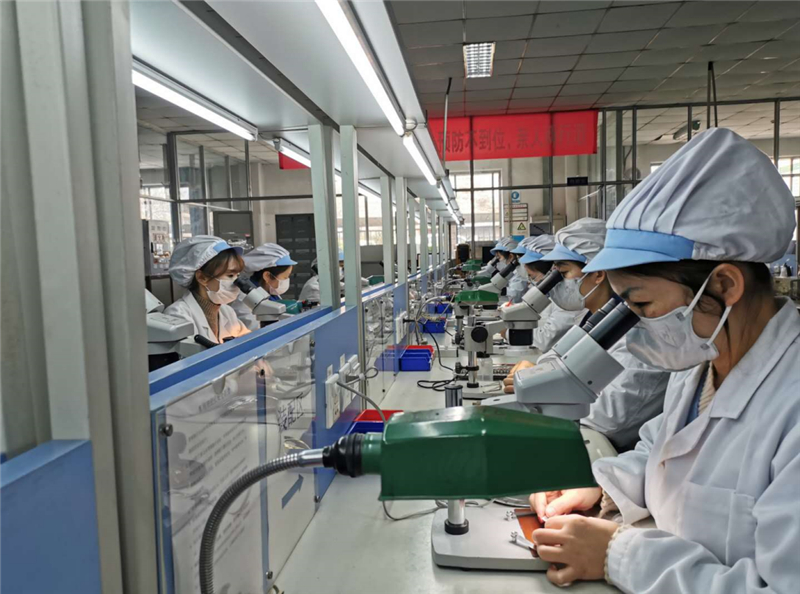 203車間負(fù)責(zé)生產(chǎn)制造電位器門類產(chǎn)品,有女職工112人,占車間總?cè)藬?shù)的90%,是名副其實(shí)的“巾幗團(tuán)隊(duì)”。該車間曾多次獲成都市“工人先鋒號(hào)”、成都市技師工作室、優(yōu)秀班組等榮譽(yù),2019年交出了產(chǎn)值破億元的優(yōu)秀成績(jī)單,是宏明電子增產(chǎn)增效、技術(shù)創(chuàng)新的一面旗幟。