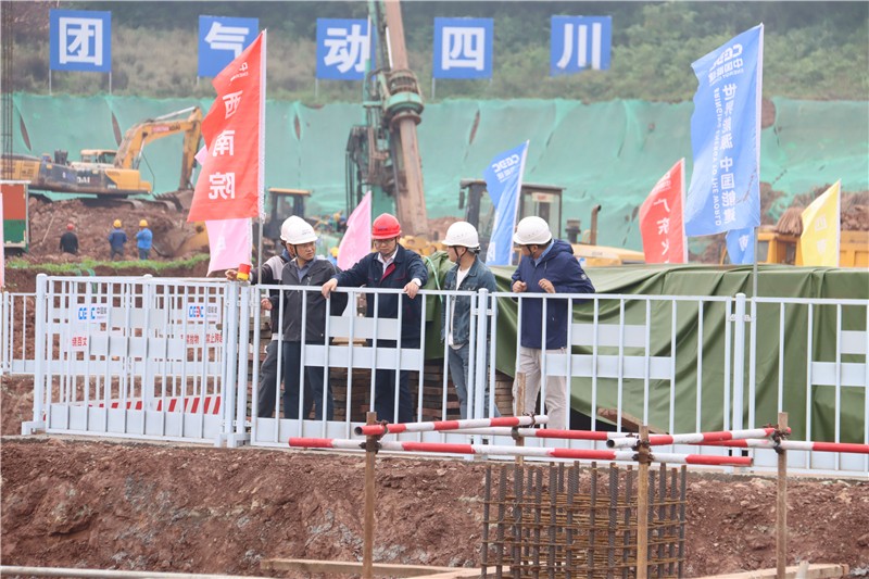 在李明、嚴天元的陪同下,達州氣電參觀考察人員一行來到項目現(xiàn)場,參觀考察資陽燃機項目施工進度情況,詳細了解了廠區(qū)布局、節(jié)點計劃、安全管理、施工管理等方面情況。