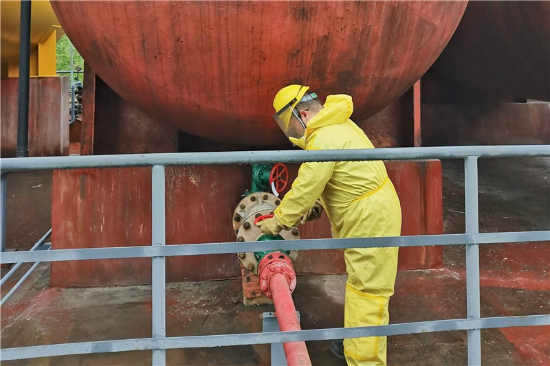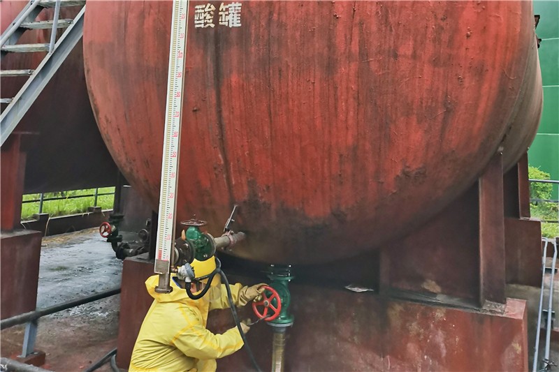 公司高度重視?;返陌踩芾恚ㄆ陂_展涉及?;吩O(shè)備設(shè)施安全隱患排查治理,杜絕因涉酸堿設(shè)備的不可靠而造成浪費甚至不安全現(xiàn)象。由于酸罐內(nèi)檢修作業(yè)場地狹窄,通風(fēng)不暢,且存在酸、塵、煙、毒殘留等不利因素,稍有疏忽,就可能發(fā)生燃燒、爆炸、中毒等意外事故。
