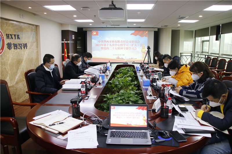 12月12日下午,華西牙科黨委召開2022年第十九次中心組學(xué)習(xí)(擴(kuò)大)會(huì)暨黨的二十大精神專題學(xué)習(xí)會(huì),華西牙科黨委書記、董事長劉凌云主持會(huì)議,黨委副書記、工會(huì)主席、職工董事金晶,黨委委員、副總經(jīng)理劉云戈,黨委委員、財(cái)務(wù)總監(jiān)王海帆,副總經(jīng)理李景雨,黨委委員、紀(jì)委書記鄧云斌,公司中層副職以上人員和子公司領(lǐng)導(dǎo)班子成員分別以線上+線下方式參加會(huì)議。