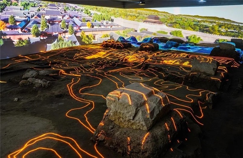 同時,技術(shù)團(tuán)隊遵循“與遺址展示不爭、不搶”的原則,在遺址表面不裝載設(shè)備的情況下,通過3D互動裝置、動態(tài)長卷、數(shù)字投影、交互AR增強現(xiàn)實和虛擬現(xiàn)實等多種方式,創(chuàng)意再現(xiàn)不同時期的德壽宮遺跡和皇家宮殿建筑園林風(fēng)貌。和其它博物館的數(shù)字化展示相比,德壽宮數(shù)字化復(fù)原展示是直接在遺址空間中進(jìn)行的,觀眾能夠更切身地體驗時間和空間上的“穿越”。