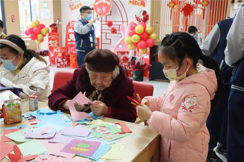 上午九時(shí),“小小志愿者”們陸續(xù)來到活動(dòng)現(xiàn)場,中心長者看見孩子們一張張活潑可愛的笑臉也不禁露出了慈愛的微笑?!靶麓河螆@會(huì)”“萌兔賀歲甜蜜蜜”“迎春送福年味濃”,一場場各具特色的小活動(dòng),拉進(jìn)了志愿者們和入住長者的距離。攜手包餃子、寫春聯(lián),讓新春的暖意照進(jìn)每位長者心中。