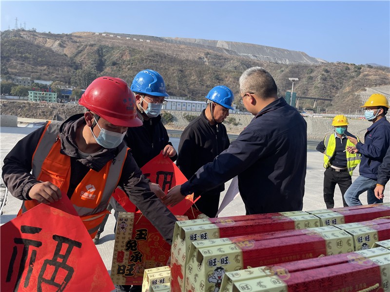 1月21日除夕,本是疫情放開后闔家團聚的日子,銀江水電站建設工地、郵處光伏發(fā)電中心、佳友物業(yè)部分職工依然堅守崗位,奮戰(zhàn)在一線。為奮力實現(xiàn)2024年首臺機組發(fā)電目標,銀江水電站春節(jié)不停工,大壩廠房混凝土澆筑及固結灌漿施工現(xiàn)場依然是一片繁忙,混凝土生產(chǎn)系統(tǒng)、施工變電站等部位也是加強檢修維護和值班值守,郵處光伏中心確保節(jié)日期間的正常運行。值班領導鄧勇、周軍、攀水電公司總經(jīng)理助理嚴瑞平走訪慰問了現(xiàn)場值班人員和各項目營地,為一線值班人員送上了慰問品,對困難職工送上了川投能源工會慰問金,對老黨員、退休黨員、退伍軍人送上了新春慰問。