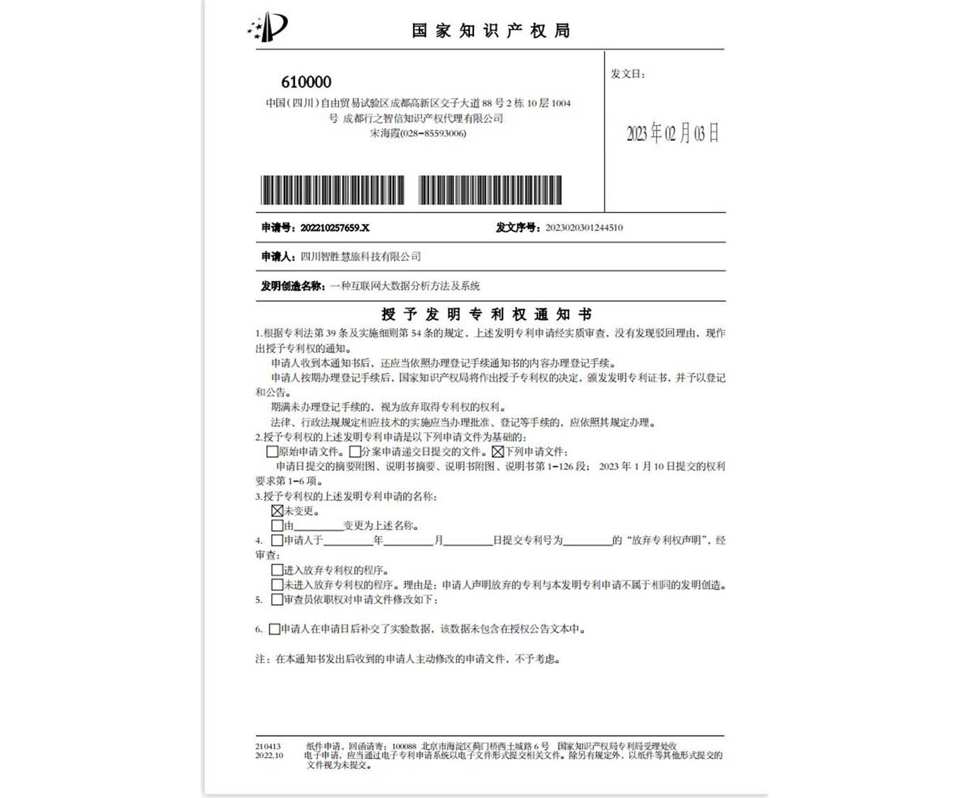 近日,川投信產(chǎn)所屬智勝集成收到來自國家知識(shí)產(chǎn)權(quán)局的兩份發(fā)明專利授權(quán)通知,兩項(xiàng)技術(shù)分別為“基于泛域名多子系統(tǒng)管理方法、管理終端及可讀存儲(chǔ)介質(zhì)”和“一種互聯(lián)網(wǎng)大數(shù)據(jù)分析方法及系統(tǒng)”。