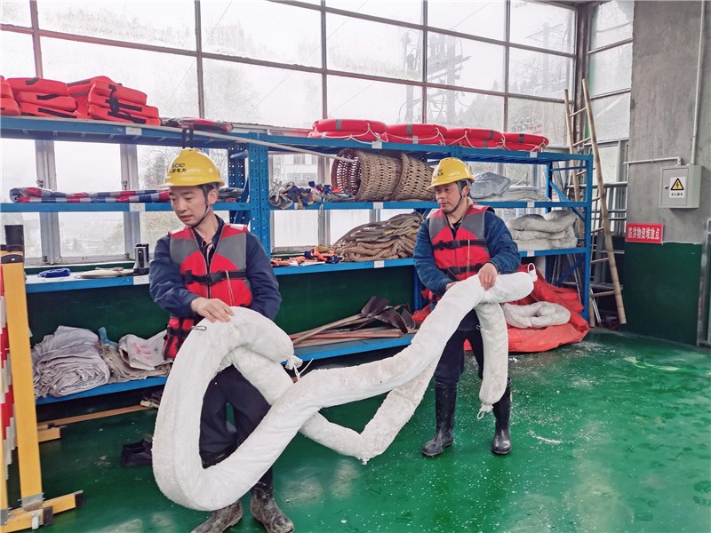 本次演練內(nèi)容為大壩值班人員應(yīng)對水庫上游突發(fā)水污染事件的現(xiàn)場應(yīng)急處置,以現(xiàn)場模擬操作的形式開展,全體參演員工準(zhǔn)時到位,應(yīng)急演練在鳳鳴湖水庫大壩正式啟動。演練場景系模擬鳳鳴湖水庫上游意外發(fā)生油污染源流入鳳鳴湖庫區(qū),危及飲用水源安全的“事件”。值班人員發(fā)現(xiàn)險情后,迅即啟動應(yīng)急預(yù)案,一聲令下各路人馬齊齊奔赴各自戰(zhàn)斗崗位:一路緊急關(guān)閉進(jìn)水閘控制源頭;一路火速在水面完成鋪設(shè)吸油索、吸油紙攔截油污;一路則同步將“險情”逐級上報公司領(lǐng)導(dǎo)和政府主管部門。在大家冷靜沉著、嚴(yán)密配合、協(xié)同處置下,庫區(qū)污染物得到精準(zhǔn)、迅速及有效控制,龍門山麓這一汪碧波得以安然度險。