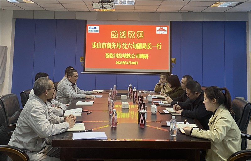 3月30日,樂山市商務(wù)局副局長沈六旬、峨眉山市商務(wù)局局長楊換榮等一行5人到川投峨鐵公司調(diào)研指導(dǎo)外貿(mào)工作。公司總經(jīng)理陳新龍、常務(wù)副總經(jīng)理李宏、總會(huì)計(jì)師方玲、營銷總監(jiān)周全等現(xiàn)場陪同調(diào)研。