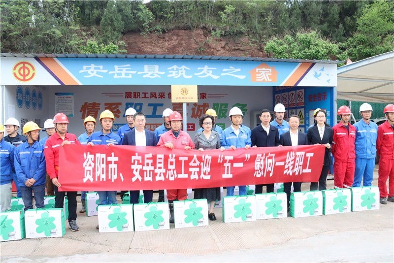 “五一”國際勞動節(jié)將至,4月24日,資陽市總工會黨組書記、副主席黃勤帶隊赴資陽燃?xì)怆娬卷椖靠赐繂栆痪€施工人員,為他們送上節(jié)日祝福。資陽市總工會黨組成員、副主席李福金,安岳縣委常委、統(tǒng)戰(zhàn)部部長、縣總工會主席尹鳳全參加走訪慰問活動。資陽氣電副總經(jīng)理、工會主席李明陪同。
