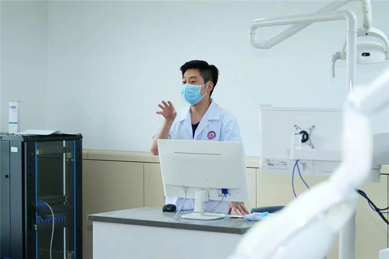 在實踐環(huán)節(jié),蔣禮醫(yī)生利用3D口內(nèi)掃描儀與同學(xué)們進(jìn)行了互動體驗,并在虛擬仿真口腔技能訓(xùn)練機上實踐操作,用最新的教育教學(xué)手段,讓同學(xué)們對口腔醫(yī)學(xué)有了全新的認(rèn)識。