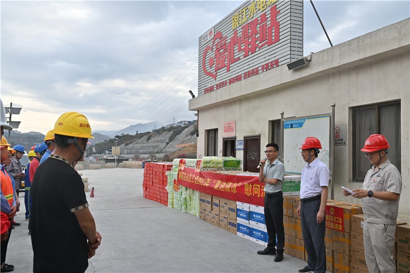 6月6日上午,攀枝花市總工會(huì)張平副主席一行來到銀江水電站“愛心驛站”,慰問奮戰(zhàn)在極端高溫下的一線作業(yè)人員和管理人員。攀水電公司黨總支書記、董事長(zhǎng)徐孝剛,參建單位代表及公司志愿者服務(wù)隊(duì)參加慰問,公司黨總支副書記、董事會(huì)秘書、工會(huì)主席鄧勇主持活動(dòng)。