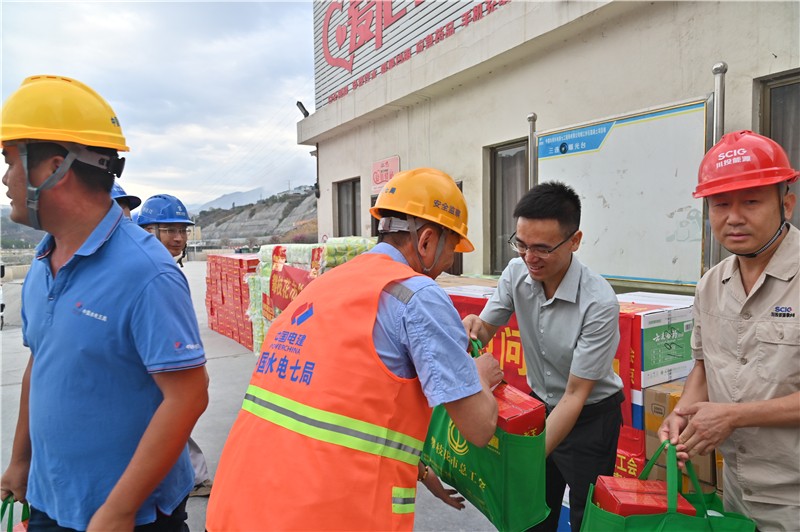 近日,攀枝花市氣溫連續(xù)突破40℃,各級(jí)工會(huì)主動(dòng)作為、多措并舉推進(jìn)防暑降溫工作,切實(shí)維護(hù)職工群眾安全健康權(quán)益,在銀江水電站“愛心驛站”,張平向奮戰(zhàn)在一線建設(shè)者們表示深深的敬意和誠(chéng)摯的慰問,叮囑大家在保證工作質(zhì)量、工作進(jìn)度的前提下,注重自身安全,做好勞動(dòng)保護(hù),防止高溫中暑。并為長(zhǎng)江設(shè)計(jì)、貴陽院監(jiān)理、二灘建設(shè)監(jiān)理、華東院監(jiān)理、水電五局、水電七局、廣東源天等20家參建單位的工友代表,送上了清涼飲料、沐浴露、洗衣液、防暑藥品等500份防暑降溫清涼物資,為頂著烈日高溫堅(jiān)守崗位,辛勤勞作的一線工友們送上一份清涼和關(guān)懷。