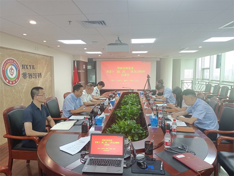 6月20日,華西牙科黨委組織召開(kāi)專題會(huì)議,傳達(dá)學(xué)習(xí)省委十二屆二次、三次全會(huì)精神。華西牙科黨委書(shū)記、董事長(zhǎng)、總經(jīng)理劉凌云主持會(huì)議,黨委副書(shū)記、工會(huì)主席金晶,黨委委員、副總經(jīng)理劉云戈,副總經(jīng)理李景雨以及各黨(總)支部書(shū)記、支部委員15人參加會(huì)議。