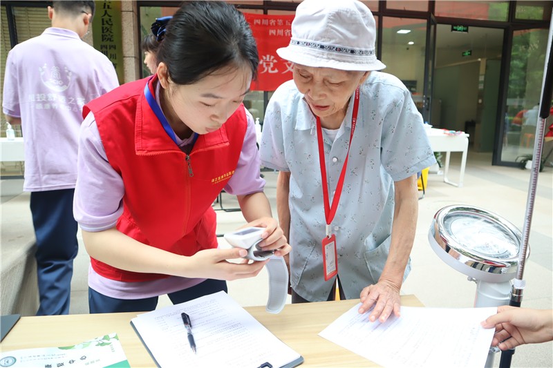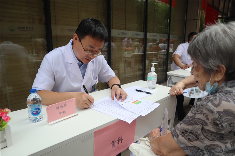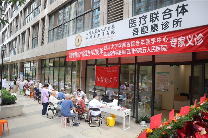 開業(yè)當(dāng)天,為慶祝建黨102周年,弘揚(yáng)偉大建黨精神,四川大學(xué)華西醫(yī)院老年醫(yī)學(xué)中心、四川省老年醫(yī)院的多名專家在現(xiàn)場開展“迎接中國共產(chǎn)黨建黨102周年”主題的健康義診活動,為長者提供健康診療、老年病評估、中醫(yī)診脈服務(wù),并向長者科普疾病預(yù)防、健康管理及心理衛(wèi)生等方面知識。