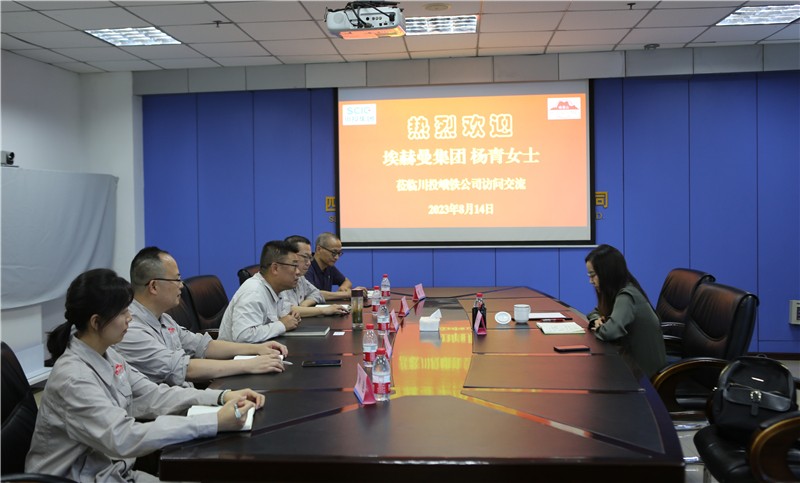 陳新龍代表川投峨鐵公司對楊青的到訪表示誠摯歡迎,向她介紹了川投峨鐵的發(fā)展歷程。楊青代表埃赫曼集團對川投峨鐵公司長期以來良好的業(yè)務(wù)開展表示感謝,并介紹了埃赫曼集團當(dāng)前礦山生產(chǎn)和技術(shù)團隊情況。