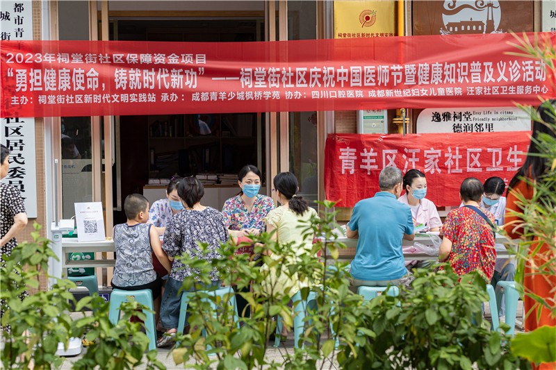 8月19日是第6個“中國醫(yī)師節(jié)”,為深入學(xué)習(xí)貫徹黨的二十大精神,大力弘揚醫(yī)務(wù)工作者的崇高職業(yè)精神,同時提高群眾口腔健康意識和預(yù)防疾病的能力。8月18日上午,四川口腔醫(yī)院聯(lián)合成都市青羊區(qū)祠堂街社區(qū)新時代文明實踐站、成都青羊少城楓橋?qū)W苑、汪家社區(qū)衛(wèi)生服務(wù)中心等單位,在祠堂街社區(qū)開展了慶祝中國醫(yī)師節(jié)健康義診活動。