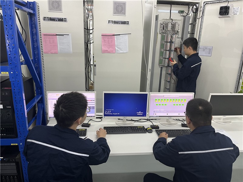 出廠驗(yàn)收工作于8月20日開始,由資陽(yáng)氣電、艾默生過(guò)程控制有限公司和西南院三方人員組建的驗(yàn)收小組根據(jù)“分散控制系統(tǒng)(DCS)技術(shù)協(xié)議”以及出廠測(cè)試驗(yàn)收大綱,逐一對(duì)DCS系統(tǒng)49面盤柜硬件、軟件功能、各操作員站進(jìn)行功能測(cè)試,重點(diǎn)對(duì)DCS每塊卡件進(jìn)行通道性能測(cè)試,控制器、電源、網(wǎng)絡(luò)、交換機(jī)等切換試驗(yàn),并對(duì)邏輯設(shè)計(jì)組態(tài)功能進(jìn)行了詳細(xì)測(cè)試,最終形成測(cè)試驗(yàn)收?qǐng)?bào)告,報(bào)告結(jié)論該系統(tǒng)在實(shí)時(shí)性、穩(wěn)定性、可靠性等方面表現(xiàn)優(yōu)異,滿足技術(shù)協(xié)議及驗(yàn)收測(cè)試大綱要求。