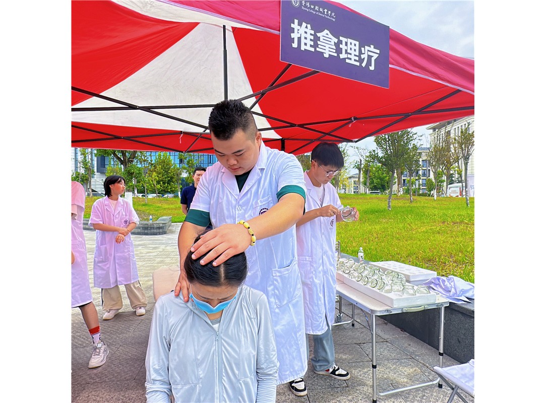 “這里疼嗎?平時要改掉一直低頭玩手機的習(xí)慣,肩頸位置也要注意保暖?!敝笇?dǎo)老師對家長的健康情況進(jìn)行問詢,并通過專業(yè)的推拿手法緩解肩頸不適等癥狀?,F(xiàn)場,師生們向大家普及口腔健康知識,提升“愛牙護(hù)牙”的意識,充分展現(xiàn)出學(xué)院服務(wù)口腔和大健康產(chǎn)業(yè)的專業(yè)優(yōu)勢,贏得新生和家長一致認(rèn)可。
