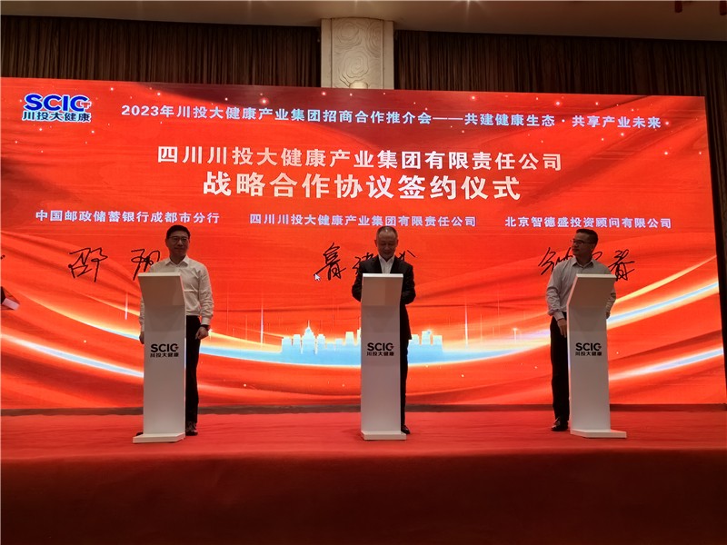 推介會的最后,在全體與會領(lǐng)導(dǎo)和嘉賓的見證下,川投大健康產(chǎn)業(yè)集團(tuán)與中國郵政儲蓄銀行成都市分行、北京智德盛投資顧問有限公司簽署戰(zhàn)略合作協(xié)議。