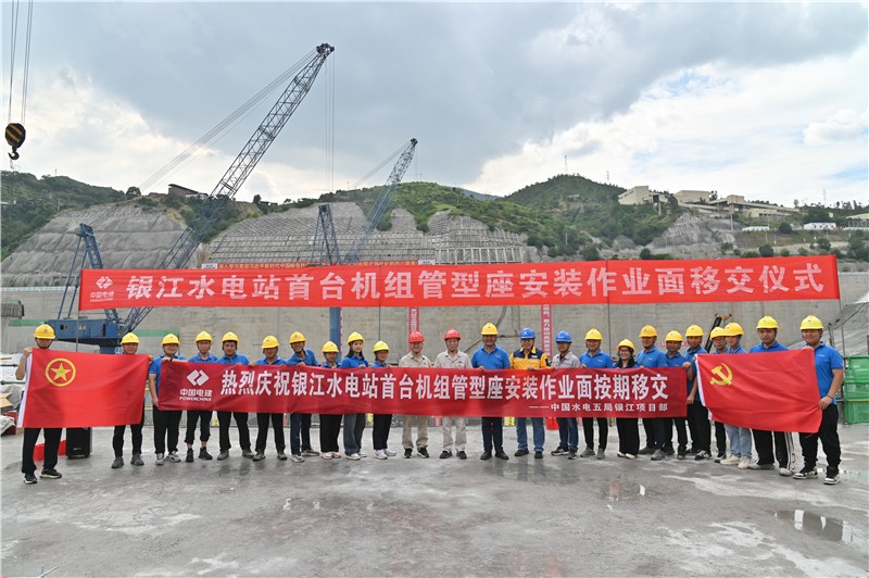 儀式首先由水電五局銀江項目部、廣東源天項目部分別匯報了首臺機組機管形座土建完成情況和安裝準備工作情況,貴陽院監(jiān)理部簡要匯報了首臺機組管形座安裝作業(yè)面移交整體檢查情況。上午10時20分,在銀江水電站參建各方的共同見證下,水電五局項目部、廣東源天項目部完成1#機組管形座安裝工作面移交簽字,成功實現(xiàn)了提前1天完成首臺機組管形座安裝工作面移交節(jié)點目標,標志著銀江水電站正式進入機組安裝新階段。