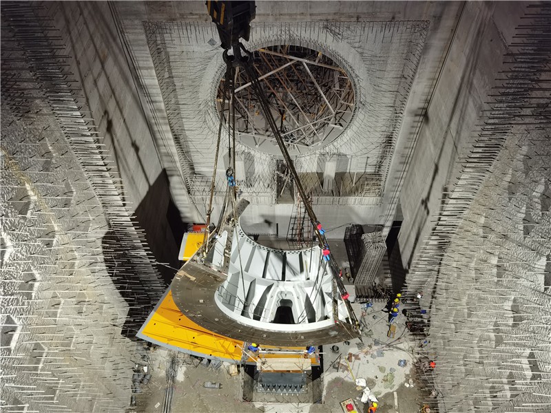 10月20日履帶吊車試吊驗(yàn)收及下固定導(dǎo)葉順利吊裝完成后,從20日16點(diǎn)開始至21日20:00結(jié)束,歷經(jīng)運(yùn)輸、翻身及吊裝三個(gè)階段長(zhǎng)達(dá)18個(gè)小時(shí)工作,管形座最重件第一瓣內(nèi)殼在公司領(lǐng)導(dǎo)的現(xiàn)場(chǎng)指導(dǎo)下穩(wěn)穩(wěn)落至安裝位置,后續(xù)公司將組織參建單位一鼓作氣將首臺(tái)機(jī)組管形座剩余內(nèi)殼、外殼、前錐體及固定導(dǎo)葉等悉數(shù)吊裝到位,力爭(zhēng)年底完成安裝工作,為實(shí)現(xiàn)2025年一季度首臺(tái)機(jī)組投產(chǎn)發(fā)電目標(biāo)打下堅(jiān)實(shí)基礎(chǔ)。