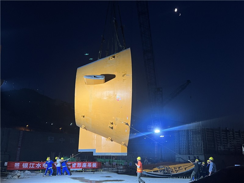 10月21日,在熱火朝天的銀江水電站建設(shè)工地,重達(dá)75噸的首臺(tái)機(jī)組管形座第一瓣內(nèi)殼在400t重型履帶吊車的吊裝下順利到位,標(biāo)志著銀江水電站工程建設(shè)全面進(jìn)入到機(jī)組安裝階段。