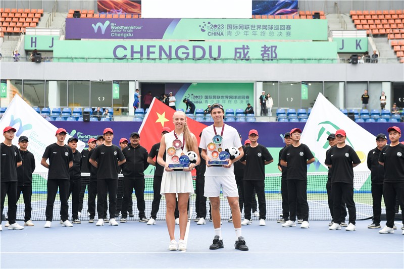10月22日,2023年國(guó)際網(wǎng)聯(lián)世界網(wǎng)球巡回賽青少年年終總決賽頒獎(jiǎng)儀式在川投國(guó)網(wǎng)公司隆重舉行,成都網(wǎng)球賽季順利收官。國(guó)家體育總局網(wǎng)球運(yùn)動(dòng)管理中心黨委書(shū)記、中國(guó)網(wǎng)球協(xié)會(huì)秘書(shū)長(zhǎng)白喜林,國(guó)際網(wǎng)球聯(lián)合會(huì)青少年和大師賽事部負(fù)責(zé)人馬修·拜弗德,成都市體育局機(jī)關(guān)黨委書(shū)記楊慎微,成都市雙流區(qū)文化體育和旅游局副局長(zhǎng)何建,四川川投國(guó)際網(wǎng)球中心黨委書(shū)記、執(zhí)行董事白蕾,貴人鳥(niǎo)集團(tuán)副總裁兼品牌總經(jīng)理巨偉軍等嘉賓為男女前三名頒獎(jiǎng)。