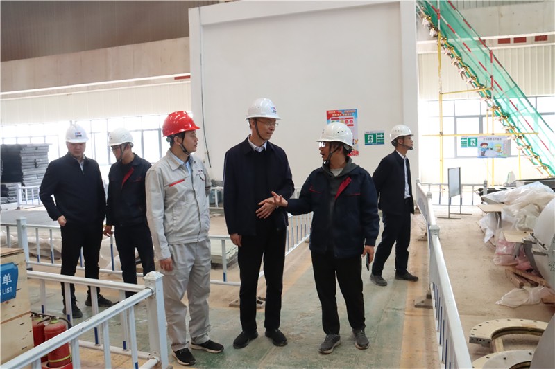 陳軍來到項目主廠房區(qū)、集控室、升壓站等點位,詳細了解項目建設進度、節(jié)點計劃安排,實地查看主機設備安裝進度,并與資陽氣電公司、EPC總承包項目部相關人員就設備供貨事宜進行了座談交流。