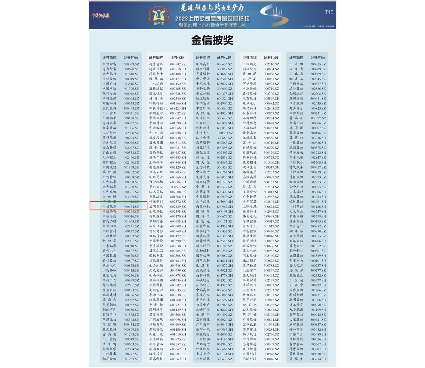 11月24日,由中國證券報主辦的“第二十五屆上市公司金牛獎”榜單揭曉,川投能源憑借穩(wěn)健增長的業(yè)績、不斷提升的綜合實力和高質(zhì)量的信息披露,榮獲“2022年度金信披獎”。