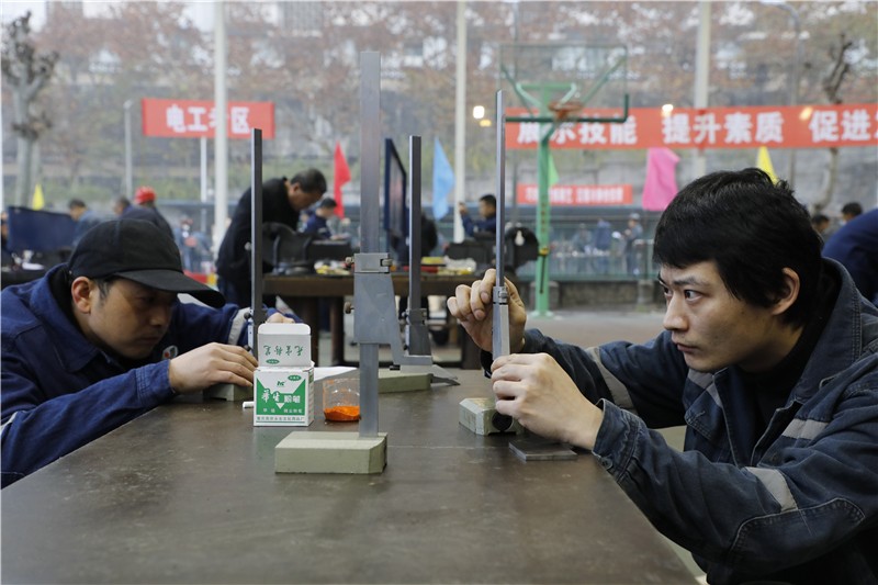 12月6日,在前期進(jìn)行參考人員互評(píng)打分等工作的基礎(chǔ)上迎來(lái)主要技術(shù)工種理論大考,各工種人員分兩批入場(chǎng)交叉考試,嚴(yán)格細(xì)致的監(jiān)考方式營(yíng)造出了公開(kāi)、公平、公正的氛圍,大家認(rèn)真閱題、仔細(xì)思考、沉著冷靜,充分發(fā)揮自己的真實(shí)水平。12月7日,礦區(qū)文體活動(dòng)場(chǎng)地全部變?yōu)榧夹g(shù)比武場(chǎng),場(chǎng)地內(nèi)鉗臺(tái)、鉆床、電氣開(kāi)關(guān)、電氧焊機(jī)分門別類、鱗次櫛比,參考人員分4批入場(chǎng),考試緊張而激烈,搶時(shí)間、追進(jìn)度、保質(zhì)量,大家八仙過(guò)海各顯神通。