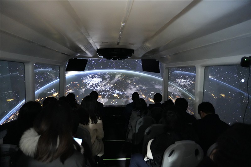 專題培訓結(jié)束后,與會嘉賓來到成都七重空間大國重器互動體驗館,分組體驗和操控“深空、航天、地面、水面、水下、虛擬”七個空間維度的專用裝備,身臨其境駕駛飛機,在高鐵駕駛艙感受“中國速度”,在海南新島切身體驗“填海造島”,一秒穿越盛唐感受成都繁華市井生活……嘉賓們遨游在虛實共生的科技世界,切身感受虛擬現(xiàn)實、增強現(xiàn)實以及視覺融合技術等文旅體驗新模式。