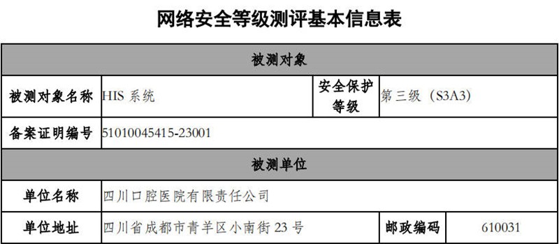 為認(rèn)真貫徹落實信息安全等級保護(hù)制度相關(guān)要求,切實提高系統(tǒng)安全保護(hù)能力和信息安全管理水平,經(jīng)過近一個月的緊張整改和嚴(yán)格測評,12月,四川口腔醫(yī)院HIS信息系統(tǒng)順利通過信息系統(tǒng)三級等保測評,HIS信息系統(tǒng)安全達(dá)到了國家三級等保認(rèn)證標(biāo)準(zhǔn)。