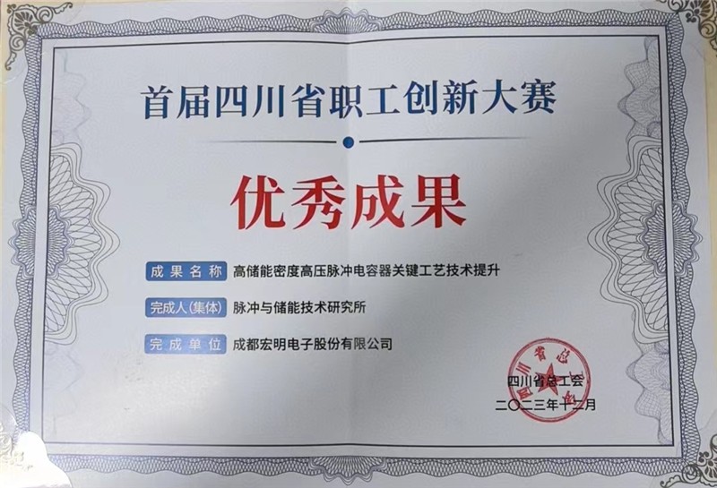 據(jù)悉,本次大賽是四川省首屆職工創(chuàng)新大賽,旨在深入實施創(chuàng)新驅(qū)動發(fā)展戰(zhàn)略,激勵廣大職工積極開展發(fā)明創(chuàng)造、技術(shù)革新、技術(shù)攻關(guān)、技術(shù)合理化建議等群眾性技術(shù)創(chuàng)新活動,著力培養(yǎng)一批創(chuàng)新高技能產(chǎn)業(yè)工人大軍。宏明電子脈沖與儲能技術(shù)團隊的“高儲能密度高壓脈沖電容器關(guān)鍵工藝技術(shù)提升”項目在此次370余申報的創(chuàng)新項目中脫穎而出、喜獲佳獎。