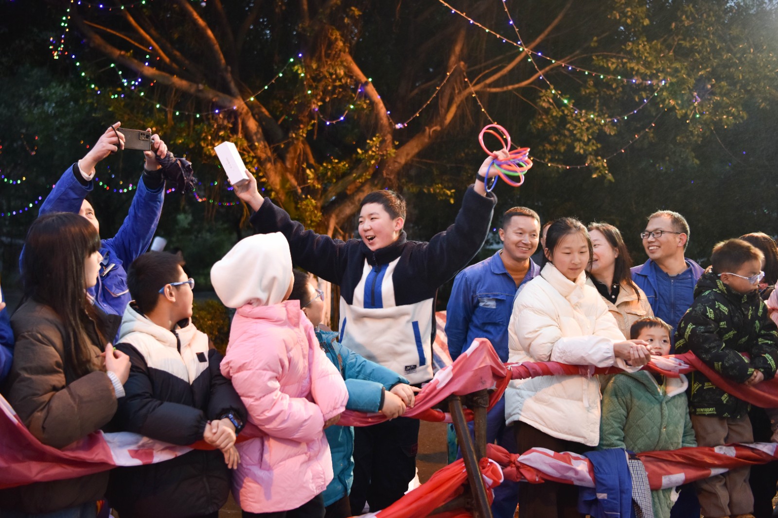 活動現(xiàn)場,工作人員們早早地布置好場地,擺放獎(jiǎng)品,等待著“套圈大俠”的到來。參加活動的職工按指定位置排隊(duì),有序參加活動,小小的套圈滿場紛飛。雖然天空下著小雨,絲毫不影響大家的熱情,“高手們”這表情,這姿勢,到位;準(zhǔn)備、瞄準(zhǔn)、套圈一系列動作連貫而嫻熟,不斷地套中物品,個(gè)個(gè)“滿載而歸”。暫時(shí)失利的職工則虛心請教技巧,不斷調(diào)整套圈姿勢,大家的熱情一次次被點(diǎn)燃,歡笑聲、喝彩聲、掌聲不絕于耳。最后在激動人心的抽獎(jiǎng)環(huán)節(jié),到場公司領(lǐng)導(dǎo)依次抽取幸運(yùn)號碼,隨著一個(gè)個(gè)中獎(jiǎng)號碼的報(bào)出,新春游園活動達(dá)到了高潮,掌聲雷動。