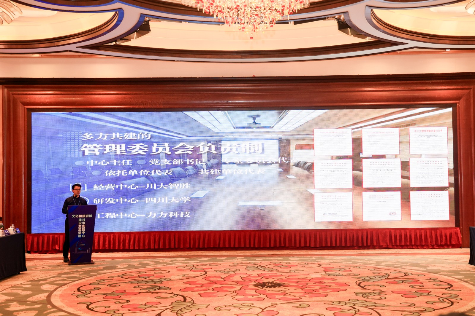 活動(dòng)現(xiàn)場(chǎng),文旅部技術(shù)創(chuàng)新中心(籌)單位代表分別匯報(bào)了技術(shù)創(chuàng)新中心近半年來(lái)的籌建進(jìn)展情況,智勝集成所屬智勝慧旅公司總經(jīng)理王春鵬針對(duì)視覺(jué)融合場(chǎng)景體驗(yàn)文化和旅游部技術(shù)創(chuàng)新中心籌建工作情況作報(bào)告,分享了近半年來(lái)智勝集成在四川省文化和旅游廳的指導(dǎo)和支持下,攜手四川大學(xué)、力方科技積極開(kāi)展各項(xiàng)籌建工作所積累的寶貴經(jīng)驗(yàn)。