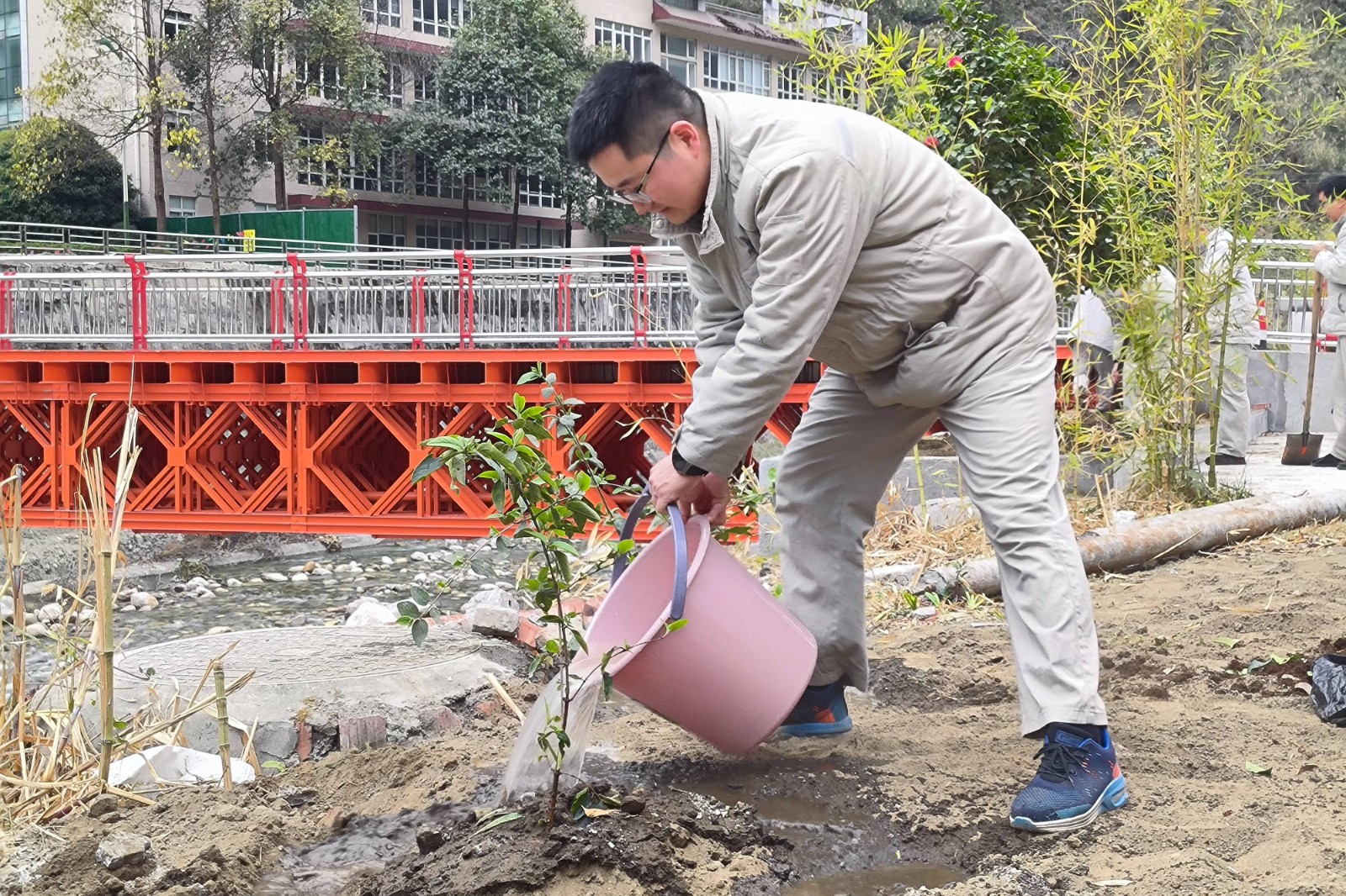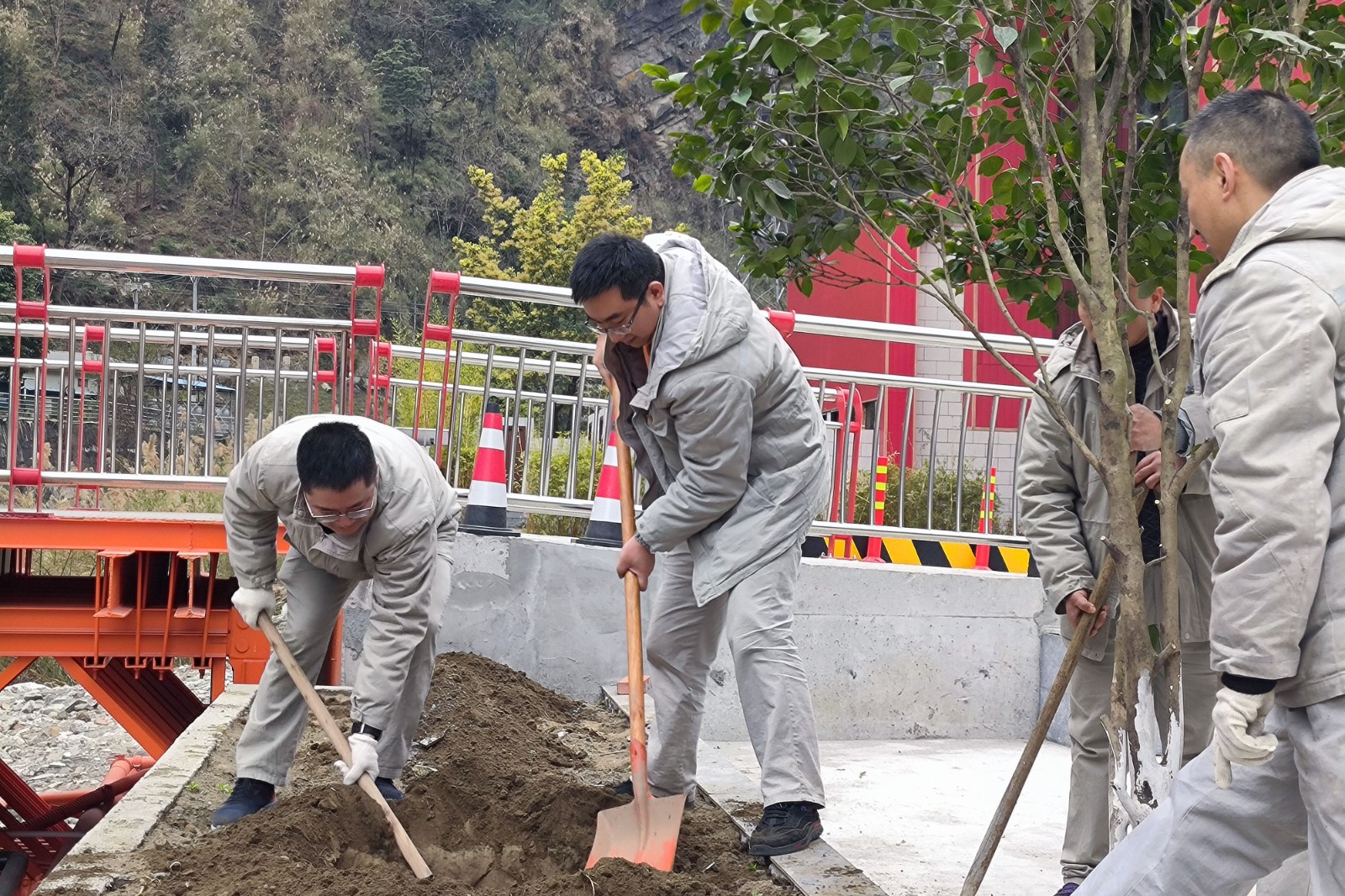 活動(dòng)現(xiàn)場(chǎng),大家熱情洋溢、干勁十足。搬運(yùn)樹(shù)苗、揮鍬鏟土、扶樹(shù)填坑、培土圍堰、提水澆灌,每一個(gè)步驟都充滿(mǎn)了歡聲笑語(yǔ),現(xiàn)場(chǎng)呈現(xiàn)出一派熱火朝天的熱鬧景象。大家精心協(xié)作,共種植了繡球、玉蘭、桂花、茶花、凌霄花等樹(shù)苗20余棵,為現(xiàn)場(chǎng)營(yíng)地增添了一道靚麗的風(fēng)景線。