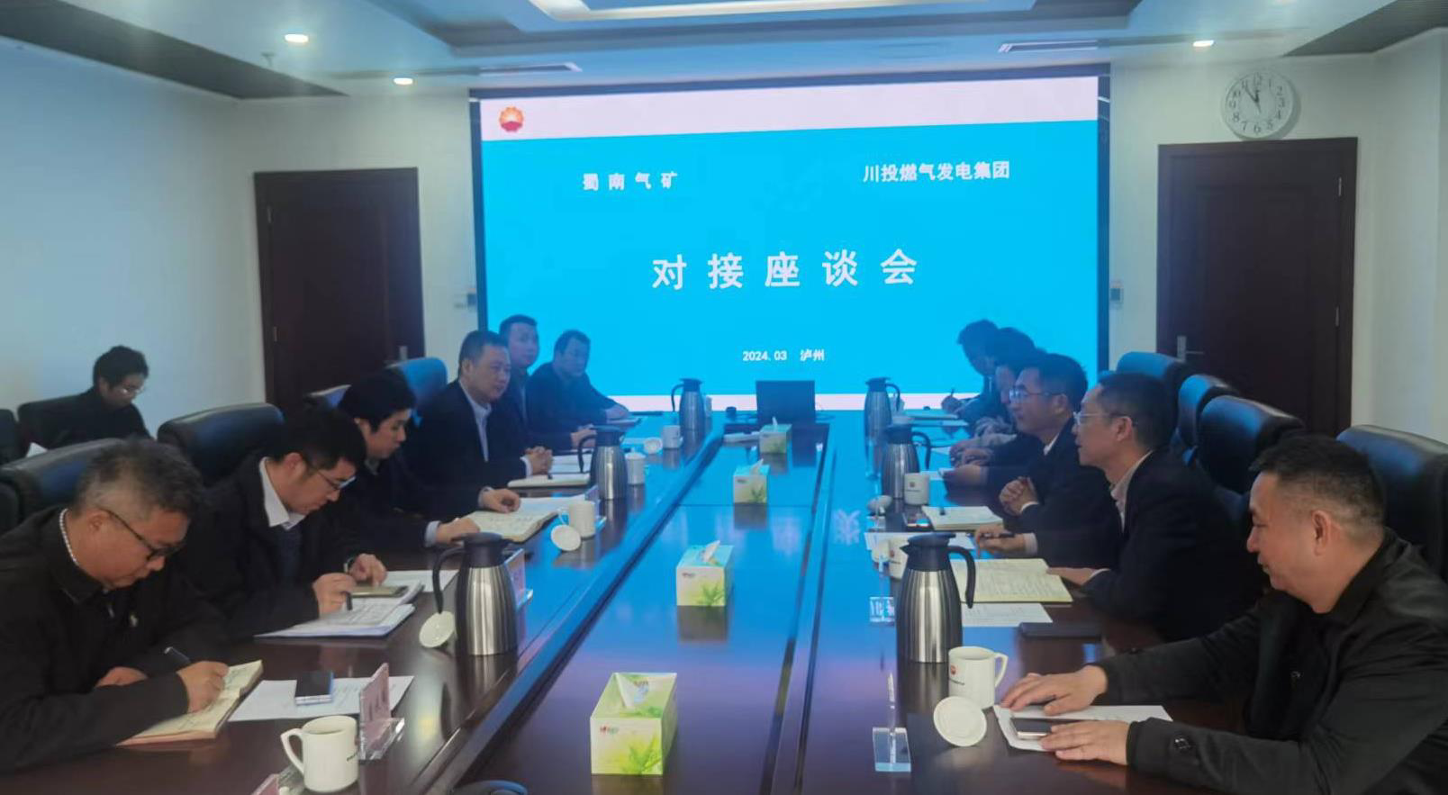 3月19日,川投燃電黨委書記、董事長(zhǎng)姚欣,黨委副書記、總經(jīng)理鄧銳赴蜀南氣礦座談交流。西南油氣田公司總經(jīng)理助理兼蜀南氣礦礦長(zhǎng)、黨委副書記李海,蜀南氣礦黨委委員、副礦長(zhǎng)周宏參加座談交流。