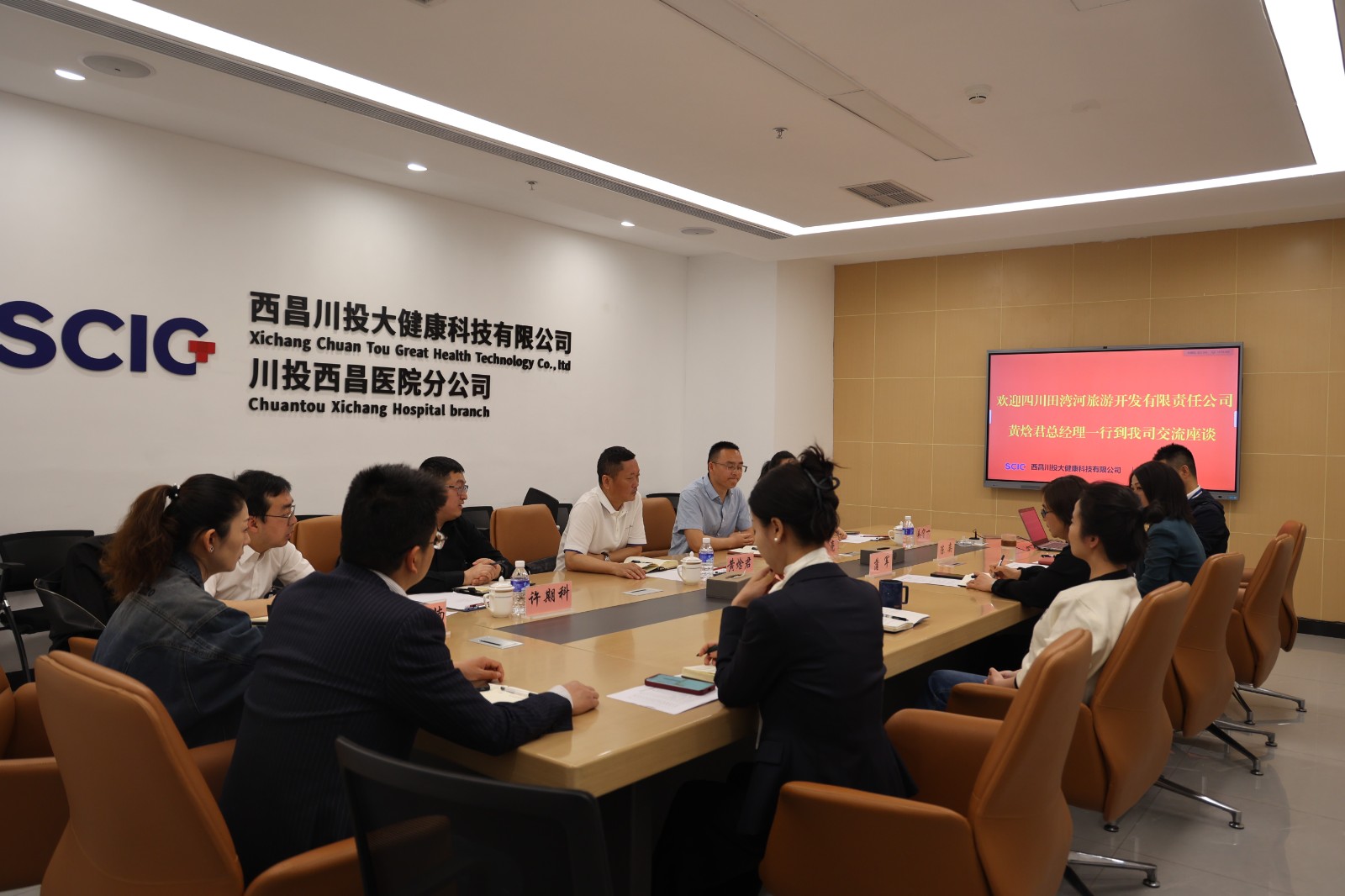 3月29日,四川田灣河旅游開(kāi)發(fā)有限責(zé)任公司總經(jīng)理黃焓君、雅安川投豪生溫泉度假酒店總經(jīng)理袁亮一行到川投西昌醫(yī)院開(kāi)展交流座談,川投西昌醫(yī)院副院長(zhǎng)蒲軍、財(cái)務(wù)總監(jiān)朱彥、副總經(jīng)理陳奕出席會(huì)議,雙方相關(guān)部門(mén)負(fù)責(zé)人、工作人員參加交流座談。