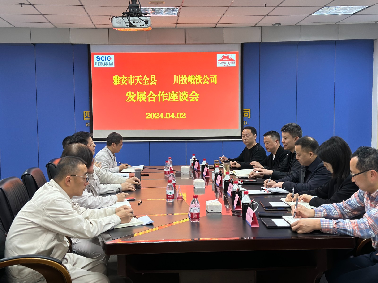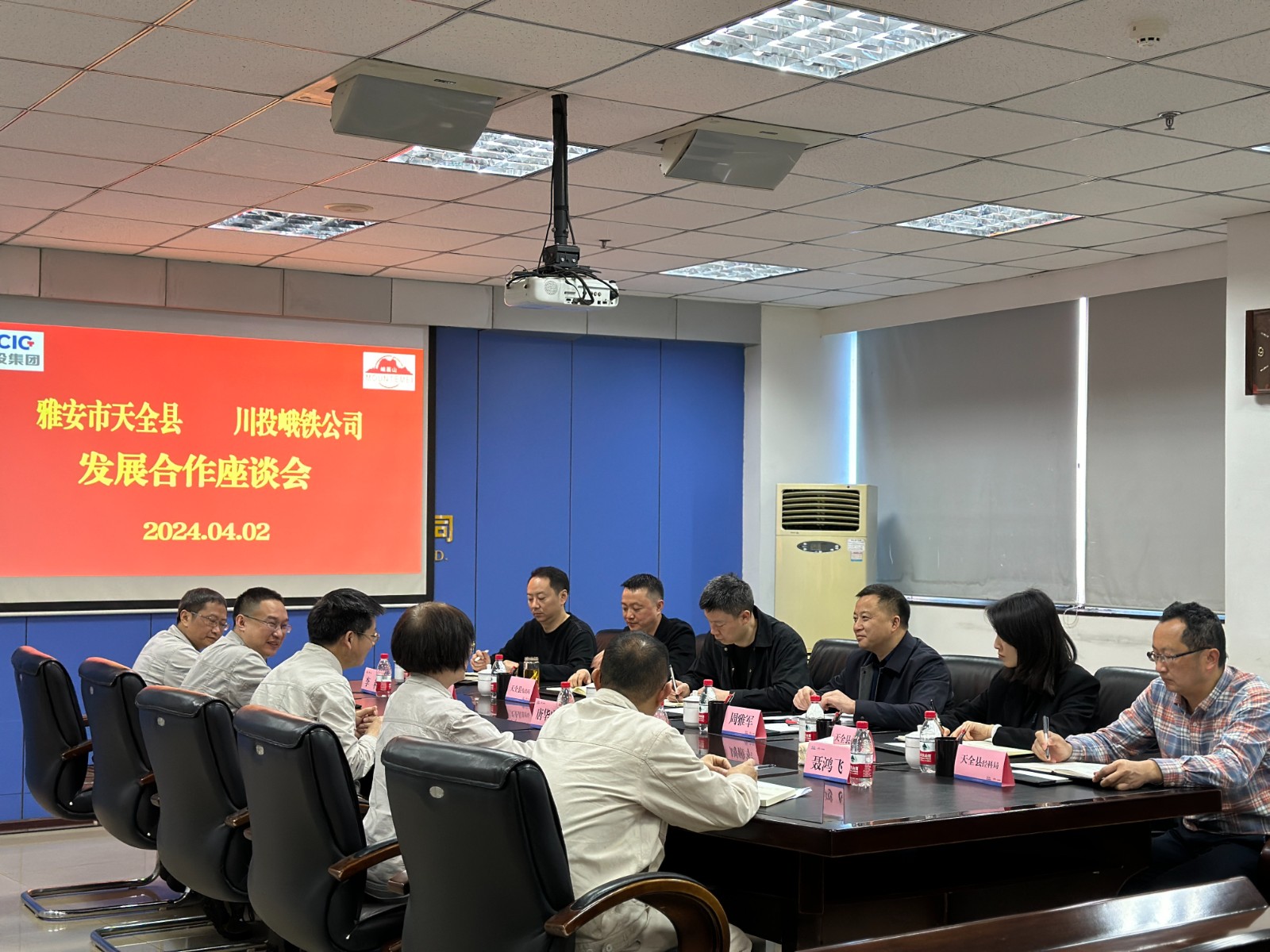 4月2日,雅安市天全縣委常委、常務(wù)副縣長余松,副縣長周雅軍一行到川投峨鐵公司再次對接發(fā)展項(xiàng)目。川投峨鐵公司黨委書記、董事長唐華應(yīng)和黨委委員、副總經(jīng)理丁憲,黨委委員、財(cái)務(wù)總監(jiān)方玲參加對接交流座談。