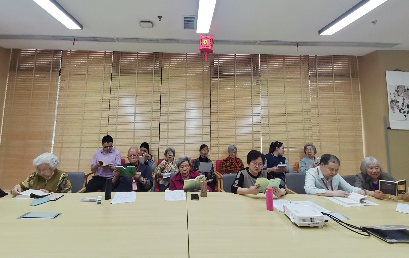 長者們在機構工作人員的引導下,翻開書本,沉醉于書中的情節(jié)故事。春日的午后,陽光灑下,與長者的書海漫游共同勾勒出品質晚年生活的美好畫卷,共同感受花開花落、歲月靜好。