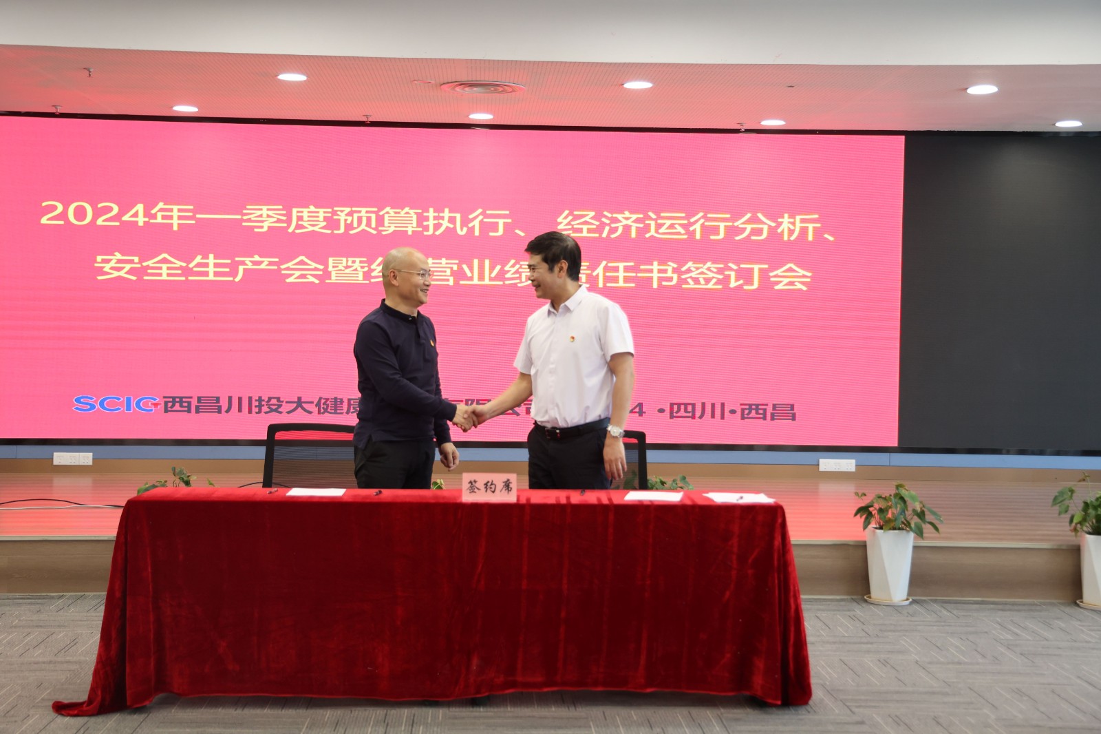 為全面貫徹省國資委、川投集團、川投大健康產(chǎn)業(yè)集團工作要求,切實推行任期制和契約化管理的要求,確保實現(xiàn)公司發(fā)展戰(zhàn)略和年度經(jīng)營業(yè)績目標,4月26日,川投西昌大健康公司召開2024年一季度預(yù)算執(zhí)行、經(jīng)濟運行分析暨經(jīng)營業(yè)績責任書簽訂會,總結(jié)工作情況,部署要點任務(wù),簽訂目標責任書。公司黨委書記、董事長龔堅出席會議并講話。