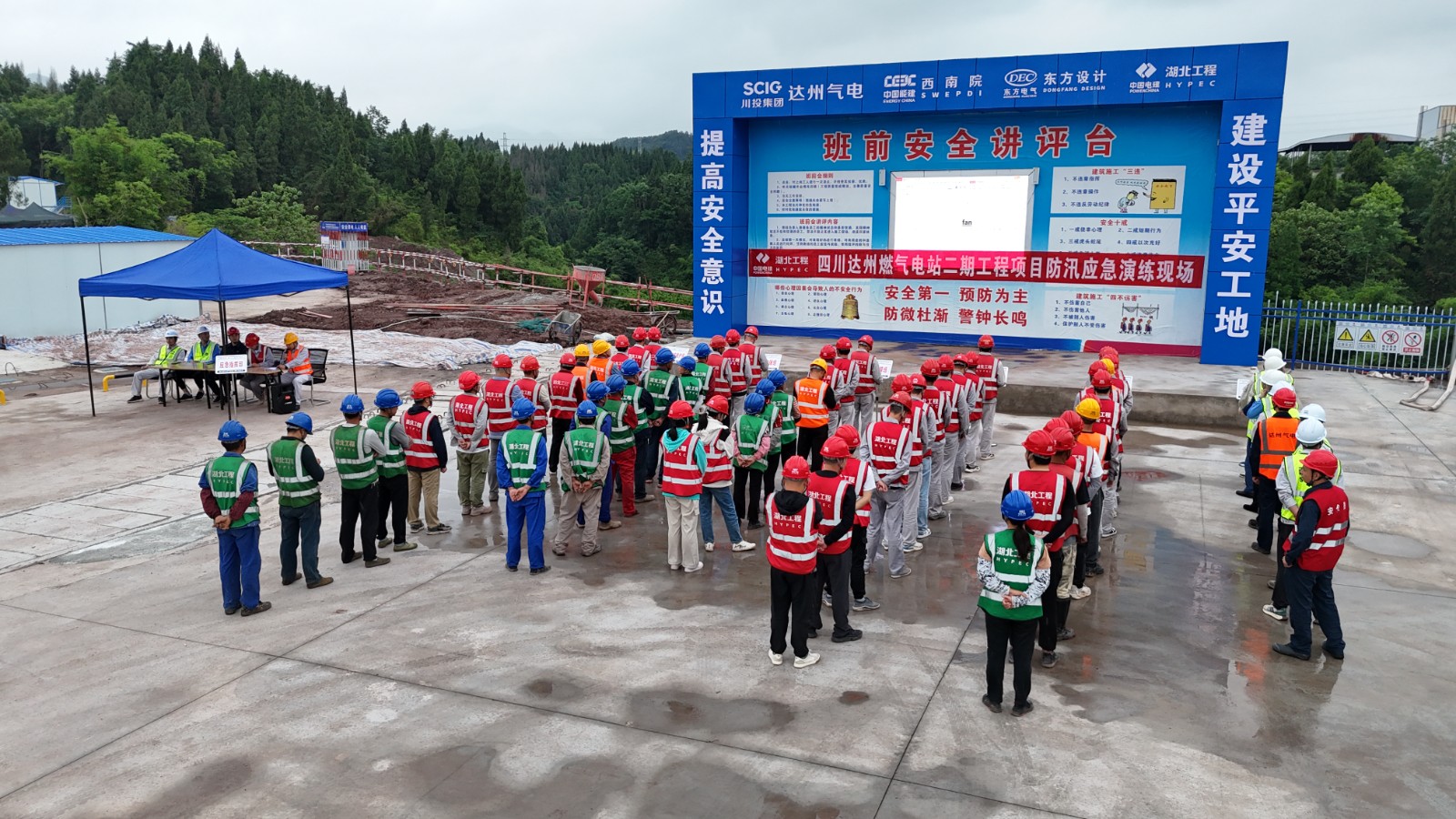 為全面落實省委、省政府關(guān)于地震災害及防汛工作部署要求,進一步提升應急響應速度和險情處置能力,5月19日,達州氣電組織二期項目監(jiān)理公司、EPC項目部及各施工隊伍在二期項目施工現(xiàn)場開展防洪防汛暨防地質(zhì)災害應急演練。演練活動由EPC總承包方安全總監(jiān)簡開祥主持。演練總指揮由達州氣電黨總支委員、副總經(jīng)理管立擔任。