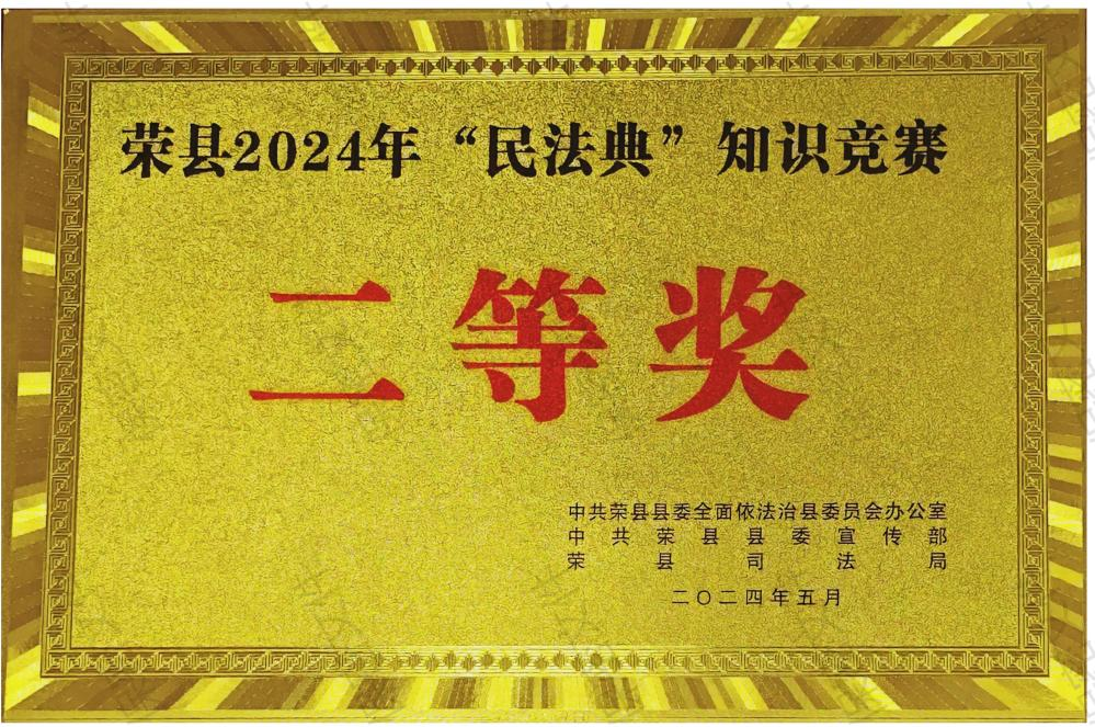 近日,為貫徹落實(shí)習(xí)近平總書記關(guān)于“法治是最好的營商環(huán)境”重要論述,進(jìn)一步加強(qiáng)對(duì)“民法典”的學(xué)習(xí)教育,中共榮縣依法治縣委員會(huì)辦公室、縣委宣傳部、縣司法局聯(lián)合組織開展“民法典”知識(shí)競賽活動(dòng)。全縣40余支參賽單位歷經(jīng)初賽、復(fù)賽,層層選拔,8支參賽隊(duì)伍進(jìn)入決賽。公司團(tuán)支部代表公司進(jìn)入決賽并榮縣川燃榮獲榮縣2024年度“民法典”知識(shí)競賽二等獎(jiǎng)。