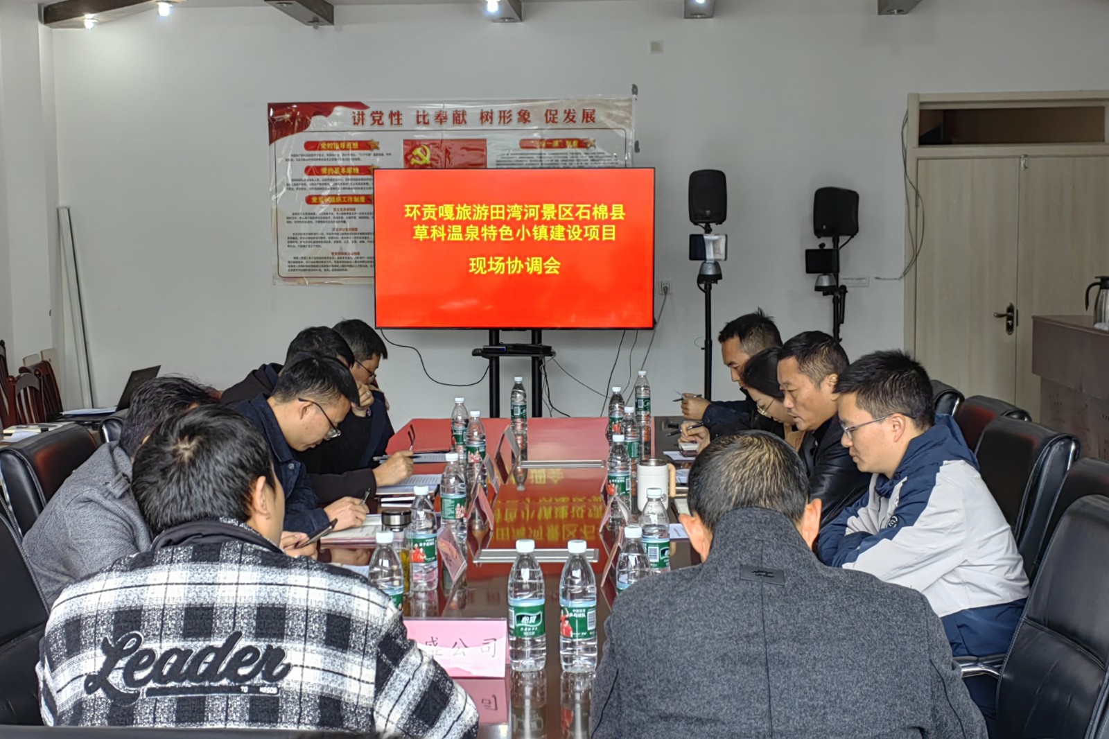 11月13日,石棉縣文化廣播電視體育和旅游局組織縣自然資源和規(guī)劃局、雅安市石棉生態(tài)環(huán)境局、縣水利局、縣稅務局、縣住建局、縣交通局、草科鄉(xiāng)政府、華盛建筑工程有限公司相關負責同志到田灣河公司所屬旅游公司草科溫小鎮(zhèn)建設項目現(xiàn)場督導檢查,并召開現(xiàn)場協(xié)調會,推進項目建設。