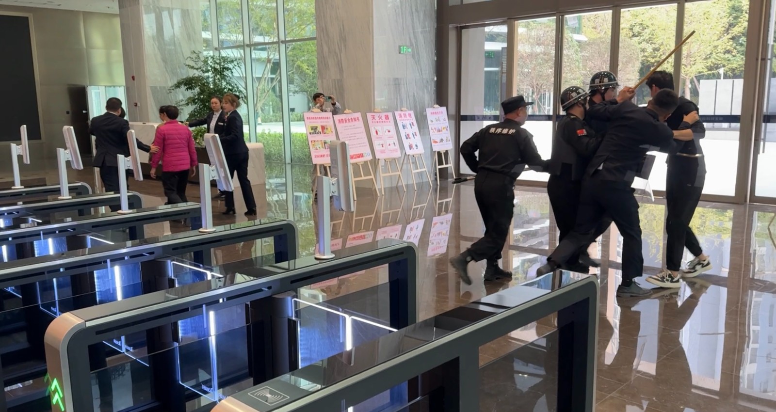 演練模擬了四名手持棍棒的“不法分子”強行闖入大廈的場景。前臺人員在第一時間發(fā)現(xiàn)異常并迅速通知現(xiàn)場安防人員,安防人員立即采取緊急措施。他們手持防暴器械,勇敢地阻止了“不法分子”的行動,迅速集結(jié)并展現(xiàn)出了卓越的團隊協(xié)作能力。在短短兩分鐘內(nèi),成功將“歹徒”制服,展現(xiàn)了全體員工高效的應(yīng)對能力。