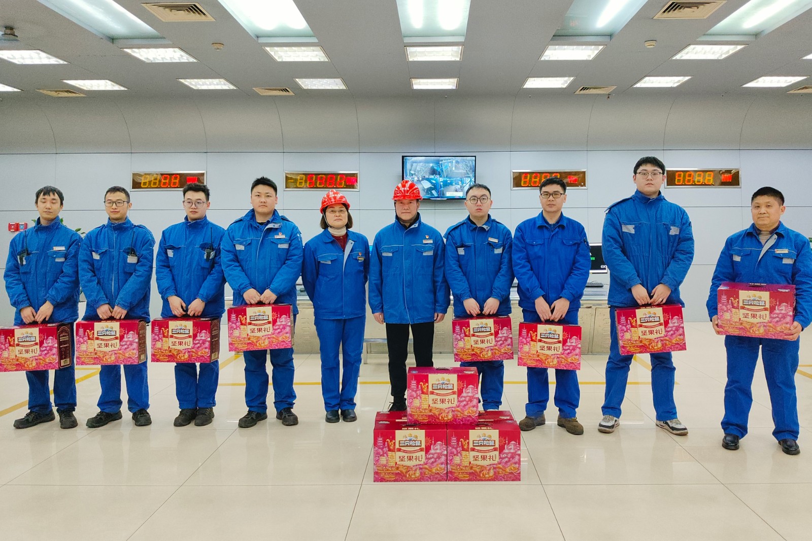 每到一處,張劍平都與值班人員親切交談,詳細(xì)了解他們的工作和生活狀況,并送上慰問(wèn)品。他對(duì)大家的辛勤付出表示感謝,代表公司向大家送上新春?jiǎn)柡?,祝愿大家在新的一年里工作順利、闔家幸福!同時(shí),他強(qiáng)調(diào)春節(jié)期間安全生產(chǎn)的重要性,叮囑值班人員要嚴(yán)格遵守值班紀(jì)律,加強(qiáng)設(shè)備巡視檢查,確保機(jī)組穩(wěn)定運(yùn)行,確保春節(jié)保電任務(wù)的順利完成。